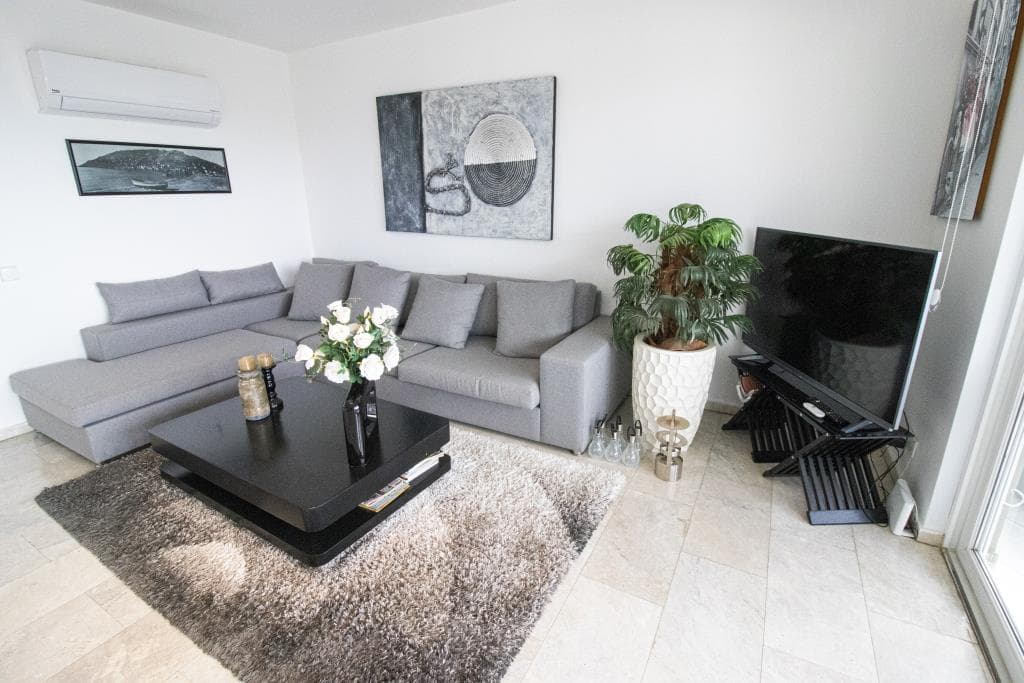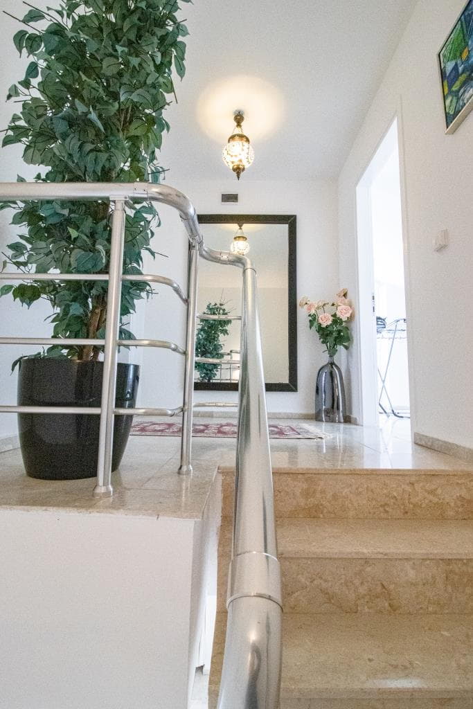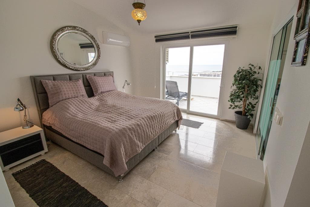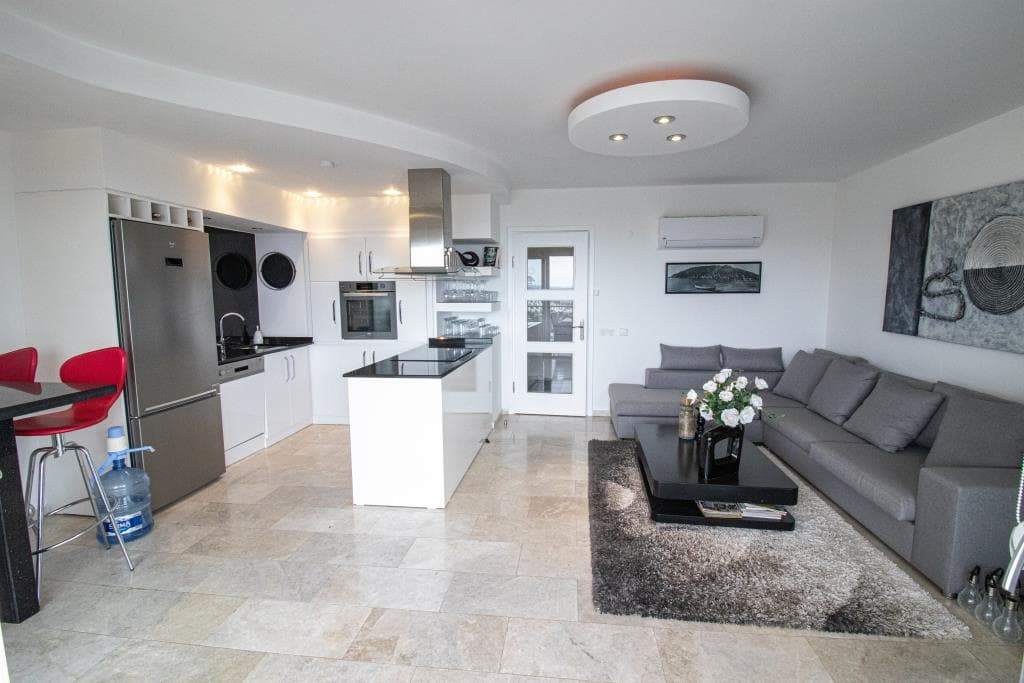 – Here you get a nice and bright 3+1 penthouse with direct access to a large balcony with an extremely beautiful view of the Mediterranean Sea. The apartment is spreaded over 2 floors, where you will find a large and cozy kitchen-dining room on the first floor, which is very bright and inviting it self. On the same floor you will find a large bedroom with its own balcony and a large and convenient bathroom. When you go upstairs, you get one more bedroom on the left side and a master bedroom with own bath room and a walk-in closet on you right side. In tis bathroom you will find a jacuzzi that offers full relaxation and pure luxury. From your Master bedroom, you also have direct access to a large sun terrace with a breathtaking view as far as the eye can see.