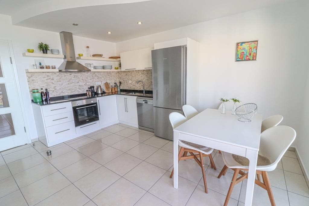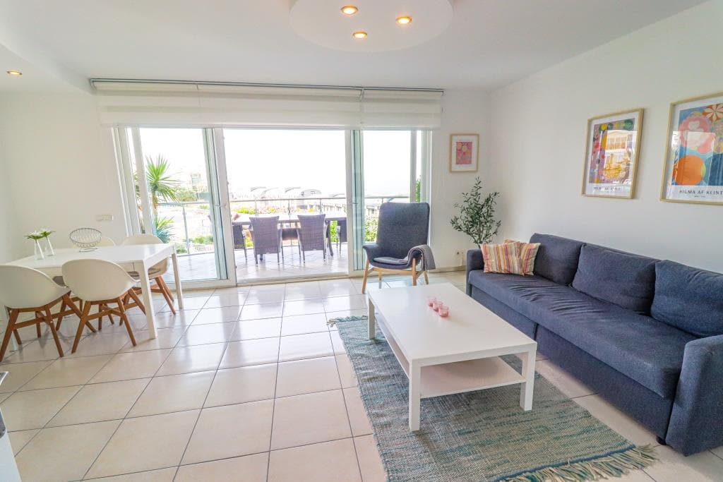 – The apartment offers a very bright and inviting white kitchen, which is connected to the living room. You can also walk from the living room to the large balcony on the south side of the apartment. The apartment has hard white goods, built-in oven, washing machine, air conditioning and extractor hood. There are 2 bathrooms, one of which has a jacuzzi. There are 2 spacious bedrooms and 2 balconies with different but beautiful views.